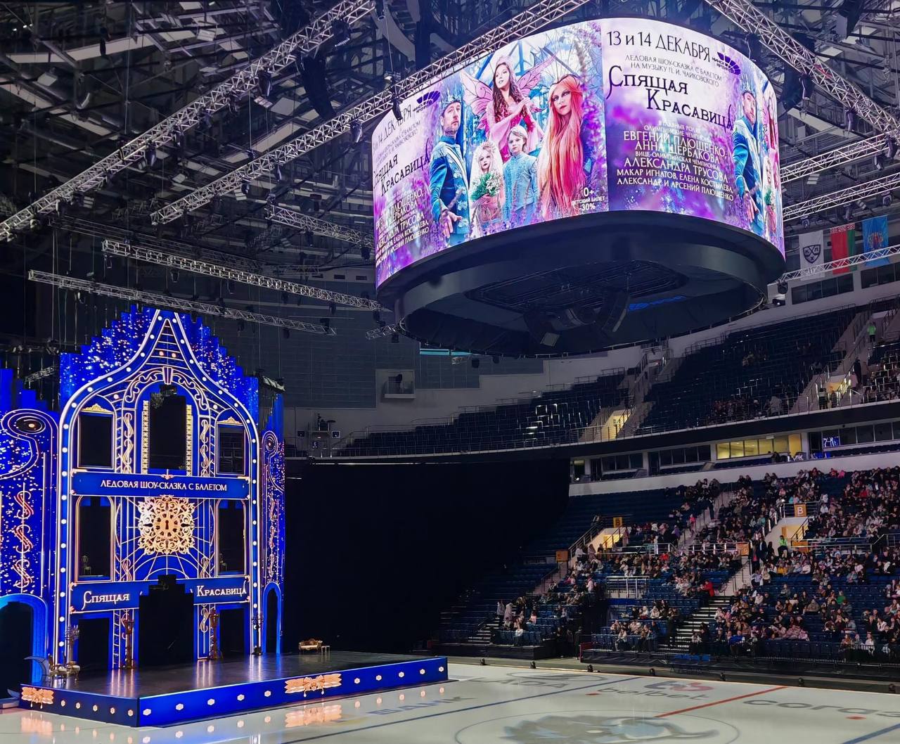 В этом году также по традиции посетили тематическую новогоднюю инсталляцию в Дана Мол, а главным событием вечера стало посещение сказочного ледового шоу «Спящая красавица с балетом» на «Минск-Арене» с участием Е.Плющенко.